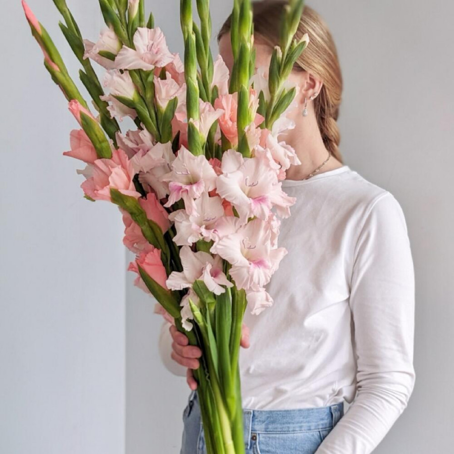 На фото букет из 19 розовых гладиолусов. В составе: гладиолус 19 шт, атласная лента 1 шт, . Все цветы свежие и ароматные, букет красиво оформлен и отлично подходит для подарка. Доступна доставка цветов или самовывоз.