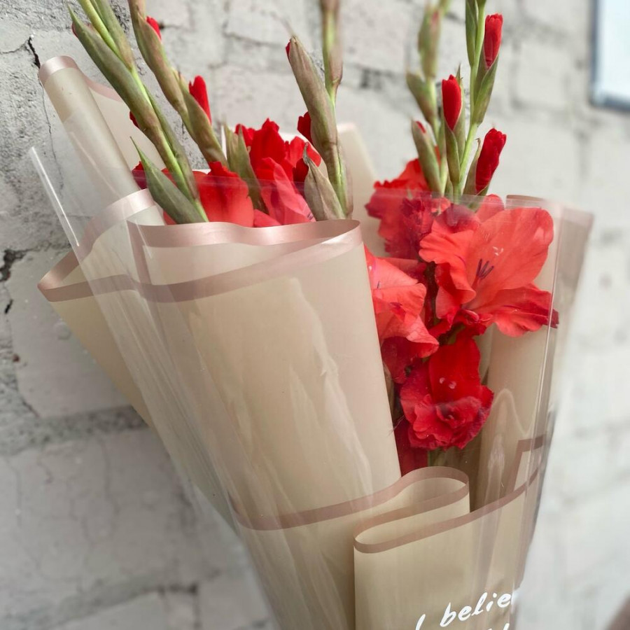 Букет из 5 красных гладиолусов фото 4